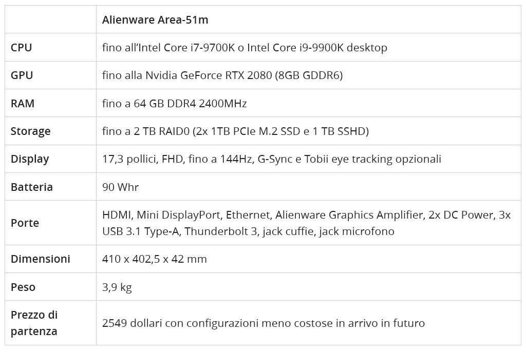 La divisione top di gamma di Dell, Alienware ha presentato l’Area-51m un nuovissimo laptop che per la prima volta consente di sostituire CPU e GPU.