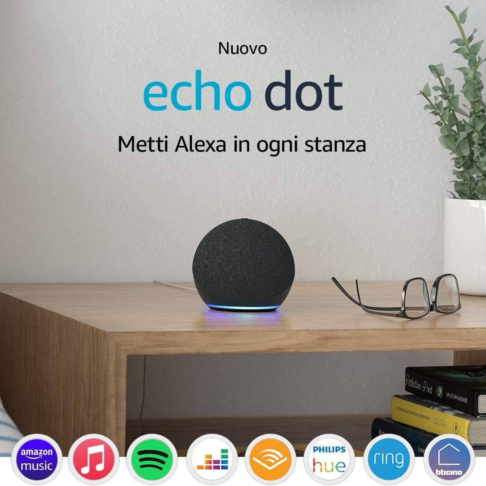 Il nuovo Echo Dot, si è rinnovato fortemente nel look. La quarta generazione di questo dispositivo abbandona la classica forma a ‘pillola‘, per una ben più voluminosa sfera che consente di inserire uno speaker di dimensioni più generose e maggiore qualità. Questa innovazione renderà l’ascolto della musica decisamente più piacevole in qualsiasi parte della vostra abitazione.