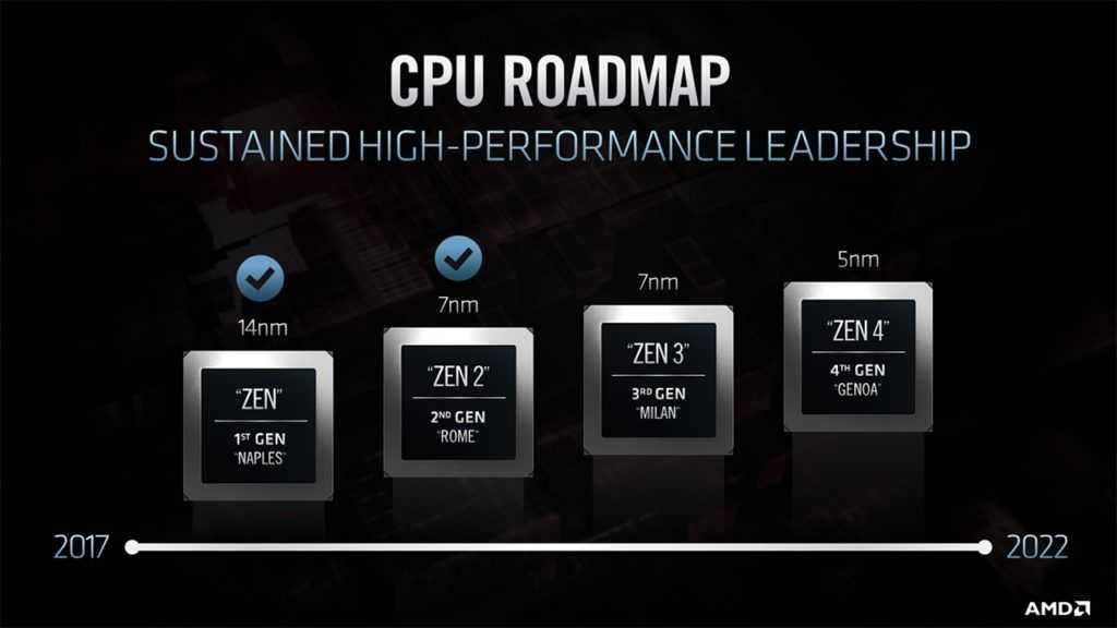 L’architettura Zen 3 sarà presentata nel corso dell’anno, e si baserà su un’evoluzione del processo produttivo a 7nm che è già adottato dal 2019.