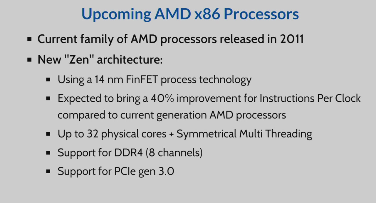 AMD sta lavorando al suo nuovo processore, Zen, ma i dettagli sono ancora tenuti ben nascosti. Ultimamente però stanno iniziando a trapelare alcune informazioni e, fra le tante voci, la più attendibile è quella che indica la CPU come un modello a ben 32 core. La fonte è piuttosto affidabile, trattandosi di una presentazione fatta al CERN.