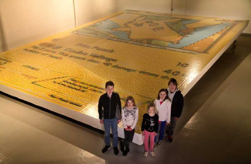 Presentato da poco a Parigi, il mosaico è alto circa 10 m e largo 7 m. Non sappiamo però quanto tempo sia stato impiegato per completarlo. Le parti in giallo (il colore predominante), sono state probabilmente realizzate con le carte energia tuono.