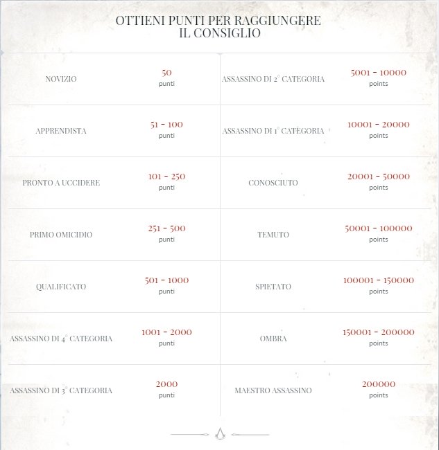 Ecco la tabella dei punti con i ruoli nel consiglio, se volete saperne di più non vi resta che visitare il sito di The Council e iscrivervi per iniziare a fare parte della comunità!