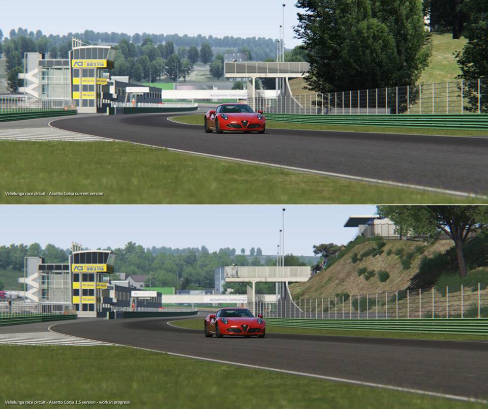 Sebbene il team di sviluppo non voglia ancora anticipare auto o tracciati, ha annunciato via Facebook che tutti i primi circuiti realizzati per Assetto Corsa (fra cui Monza, SPA, Vallelunga) verranno aggiornati per riflettere la qualità di quelli più recenti, per i quali sono state usate tecnologie migliori per il laser scan che effettivamente sono ben superiori in termini di dettagli e cura per i particolari.