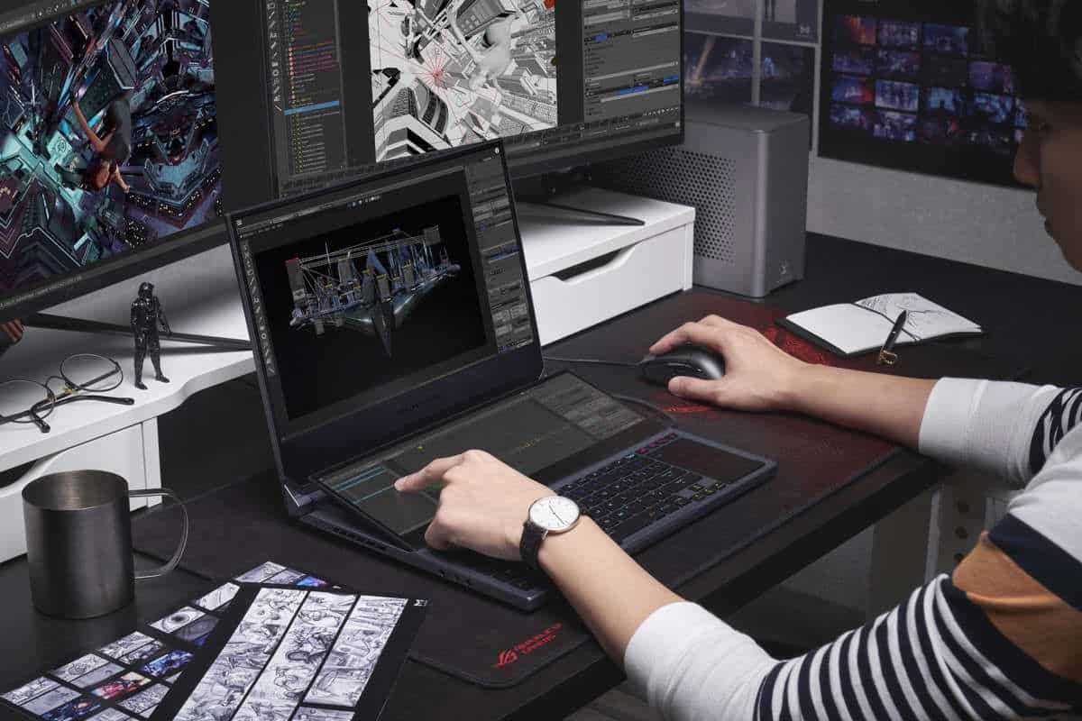 Il ROG Zephyrus Duo 15 integra l’innovativo ROG ScreenPad Plus, un touchscreen secondario pensato per il multitasking che riunisce in un unico dispositivo portatile gioco, streaming, lavoro e chat. Il ROG ScreenPad Plus è un display da 14,1″ IPS con risoluzione 4K (3840×1100) posizionato sopra la tastiera del notebook e sotto il display principale.