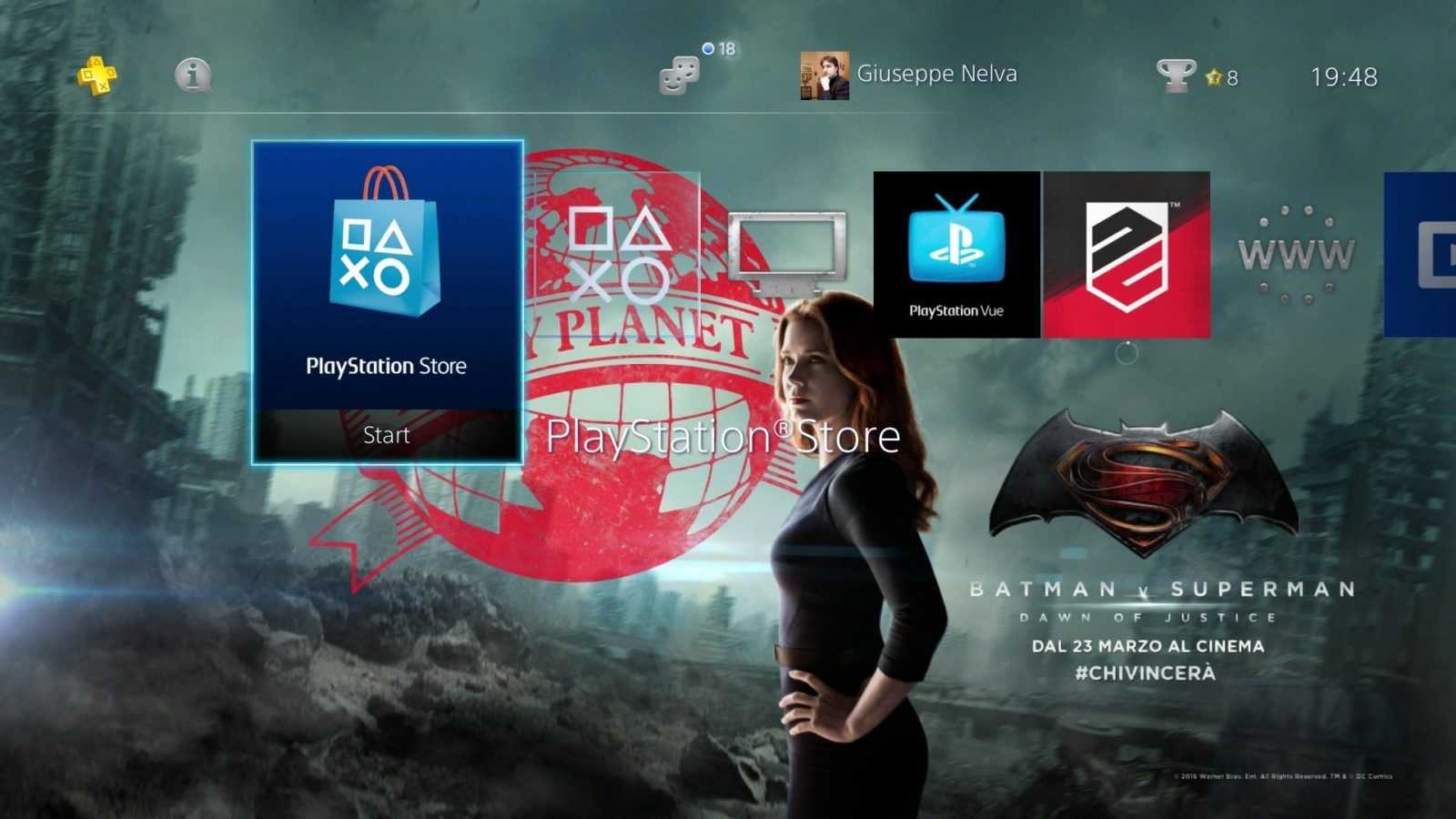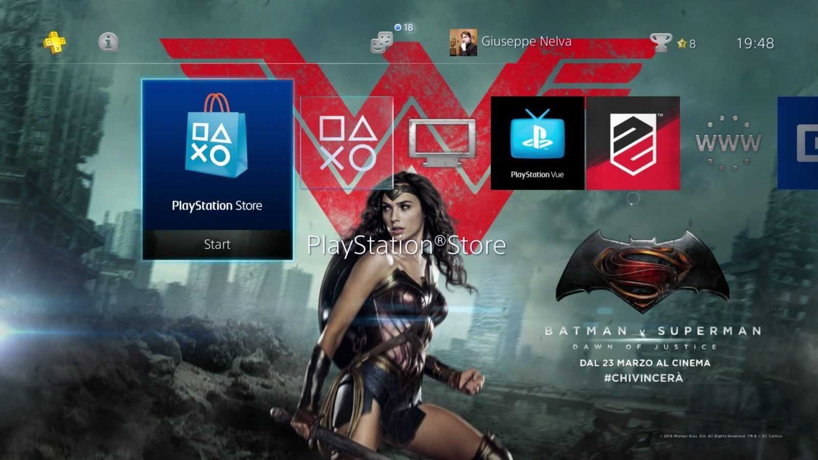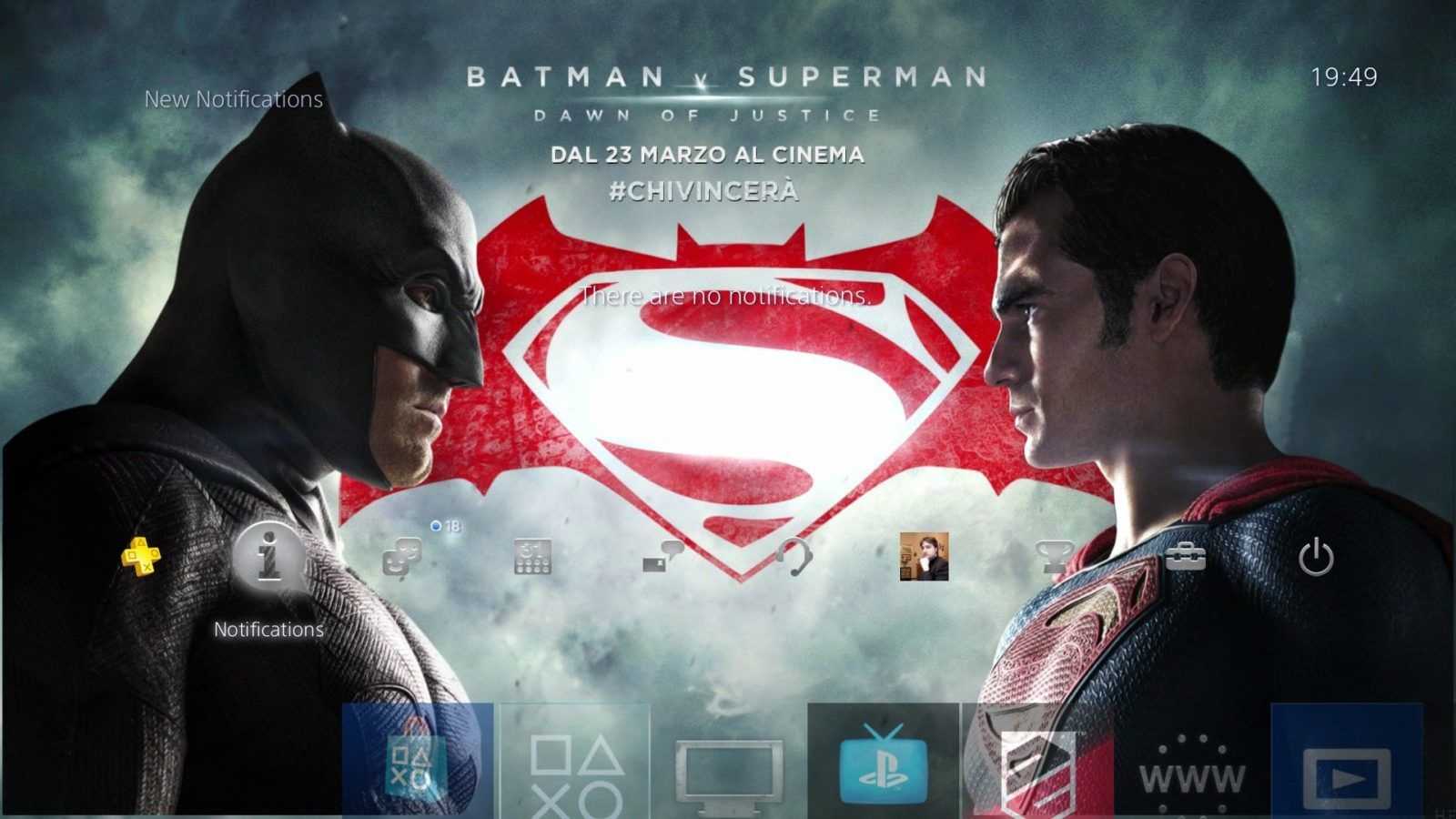Sony Computer Entertainment ha recentemente pubblicato sul PlayStation Store un nuovo tema dinamico gratuito dedicato a Batman v Superman – Dawn of Justice. Grazie a esso, i menu di PS4 e PS3 si arricchiscono di una serie di sfondi illustranti alcuni dei personaggi dell’attesissimo film, tra i quali Lex Luthor, Wonder Woman e ovviamente i due supereroi protagonisti.