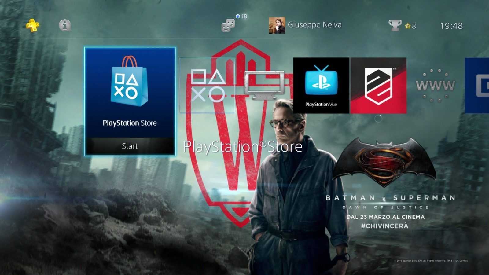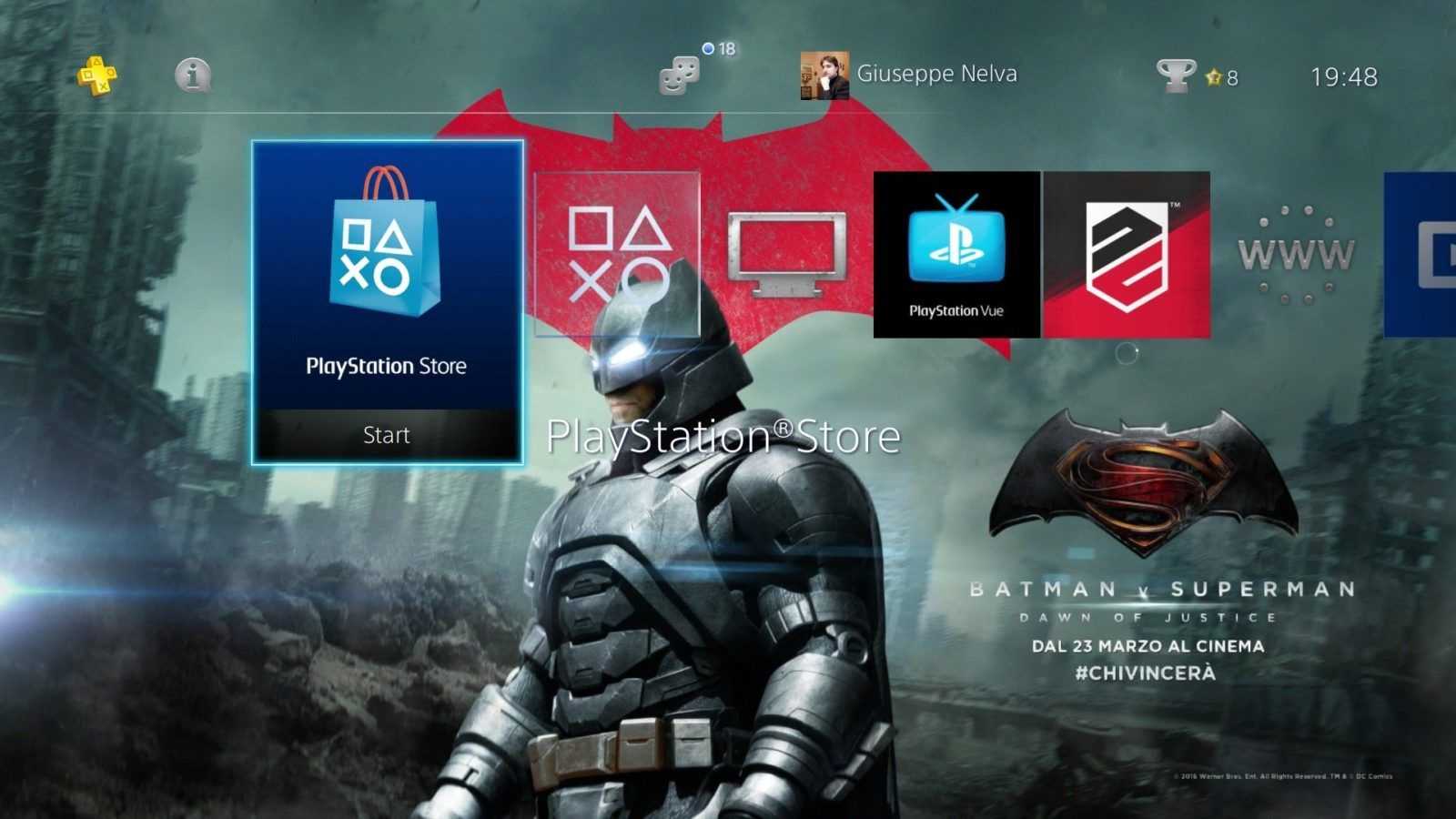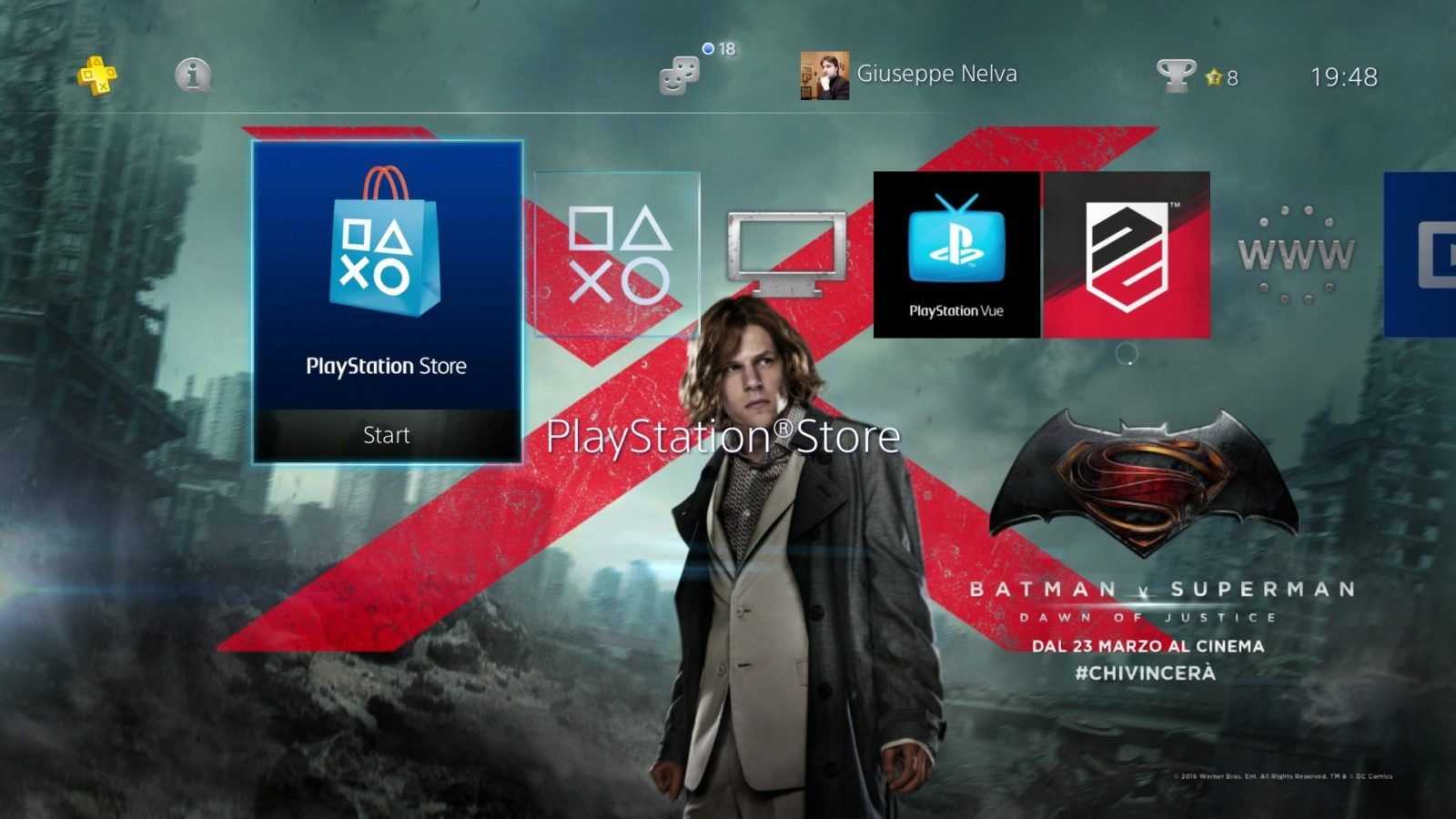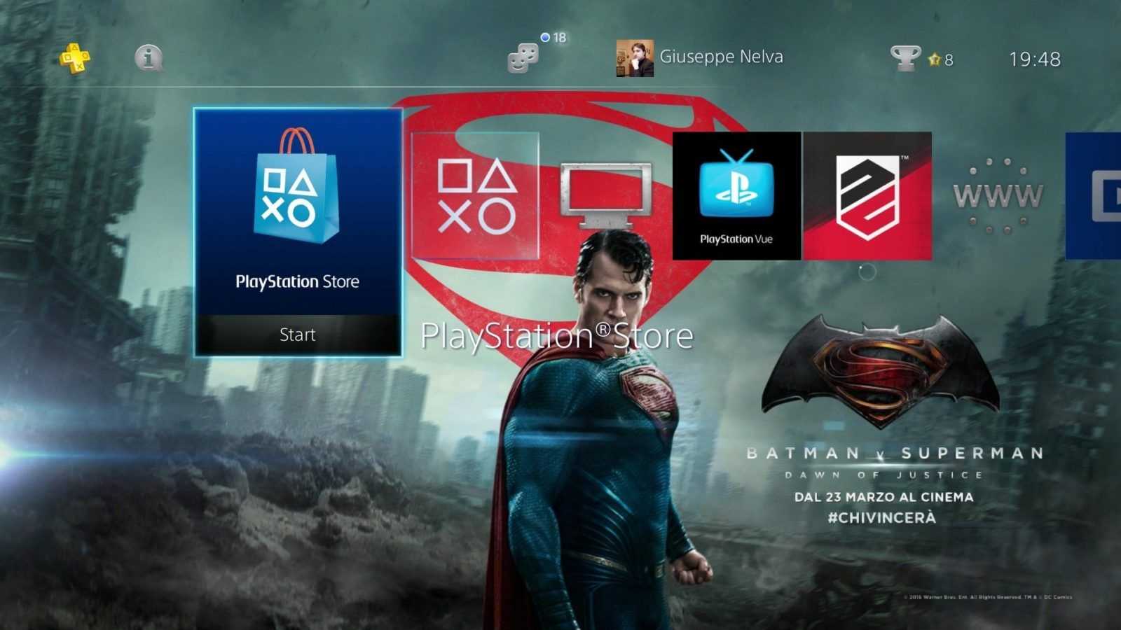 Sony Computer Entertainment ha recentemente pubblicato sul PlayStation Store un nuovo tema dinamico gratuito dedicato a Batman v Superman – Dawn of Justice. Grazie a esso, i menu di PS4 e PS3 si arricchiscono di una serie di sfondi illustranti alcuni dei personaggi dell’attesissimo film, tra i quali Lex Luthor, Wonder Woman e ovviamente i due supereroi protagonisti.