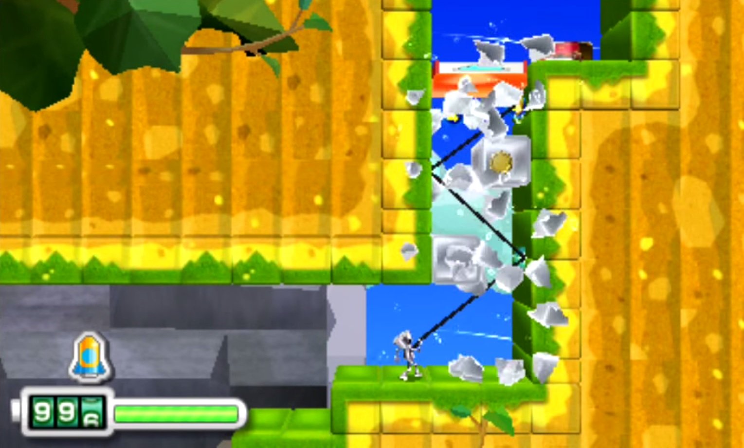 Graficamente siamo ben distanti dalle migliori produzioni per la portatile Nintendo, ma vista la natura del titolo, apertamente “giocosa”, vien da pensare che si tratti di una scelta stilistica ben precisa, che comunque non va a inficiare in alcun modo il buon lavoro svolto sui modelli del protagonista e dei personaggi secondari che abbiamo potuto vedere: rivedibili forse soltanto gli elementi che fanno da sfondo ai livelli, anche se abbiamo potuto giudicare vedendone solo un paio.