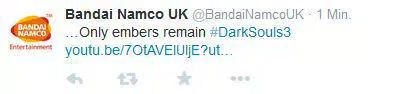 Non è ancora chiaro quello che stia succedendo a Bandai Namco ma il continuo susseguirsi di notizie trapelate e annunci “erroneamente” pubblicati in anticipo ha consegnato a tutti i videogiocatori del mondo un’unica certezza: Dark Souls III è realtà e presto dovrebbe seguire anche l’annuncio ufficiale da parte di Bandai Namco, che finora si è limitata a pubblicare un tweet sul suo account twitter UK.