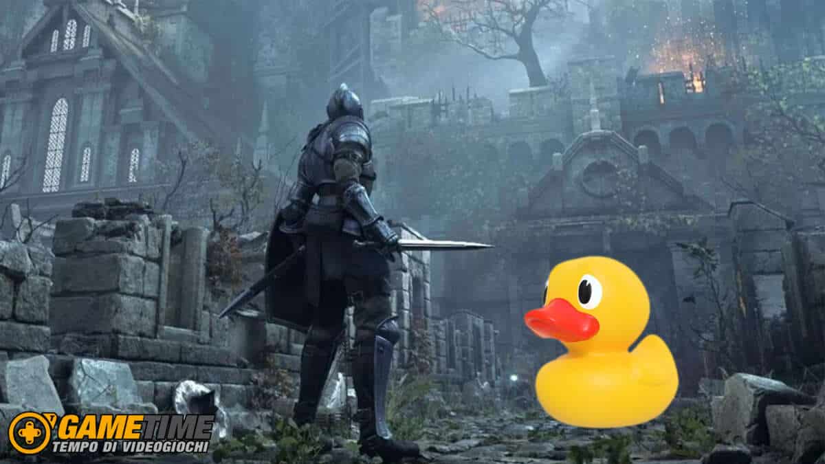 Agli albori dello sviluppo di Demon’s Souls per PlayStation 5, piccole paperelle di gomma erano sparse ovunque e una gigantesca osservava minacciosamente il mondo di gioco. Sebbene il Technical Artist di Bluepoint, Collin Harris, abbia chiarito che non esistono papere di gomma nella versione finale di Demon’s Souls, questi buffi oggetti di scena hanno svolto un ruolo considerevole nello sviluppo del sistema di distruzione.