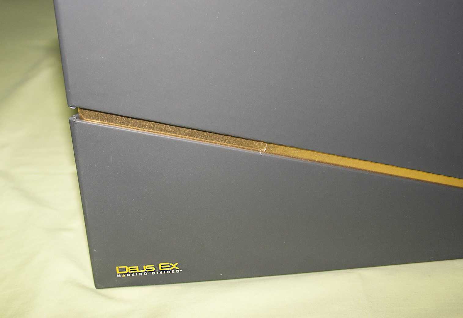 In particolare il box da collezione è rivestito in materiale effetto gomma e caratterizzato dalla colorazione nera opaca e oro lucido, riprendendo di fatto lo stile della collector’s realizzata per Human Revolution. Le linee sono davvero affascinanti e qualche abile modder potrebbe prenderle come riferimento per creare dei mini-PC o dei case per le nuove console di dimensioni ridotte come Xbox One S e PlayStation 4 Slim.