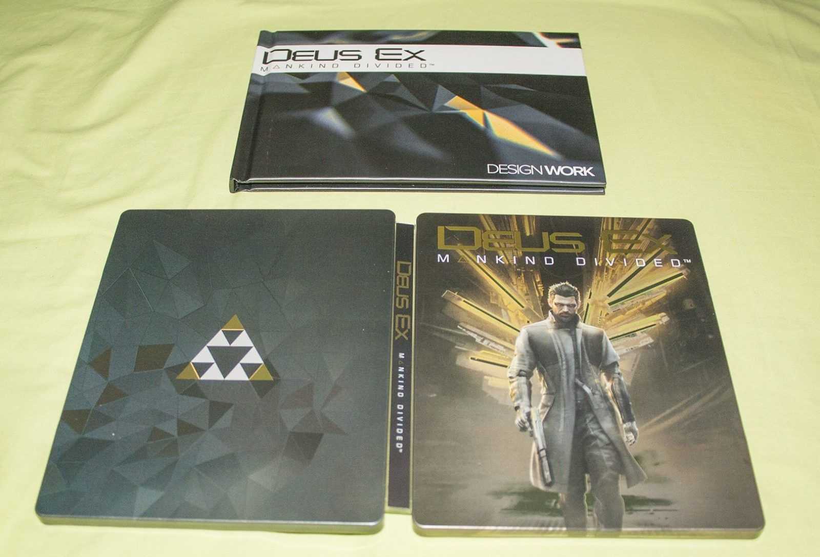 Scendendo nel dettaglio lo Steelbook è realizzato in alluminio con interno in plastica semitrasparente. Sul lato frontale vediamo una immagine a figura intera del protagonista tratta dagli artwork mostrati per la presentazione del gioco, mentre il retro mostra il logo di Deus Ex e il classico design a triangoli in varie tonalità di nero.