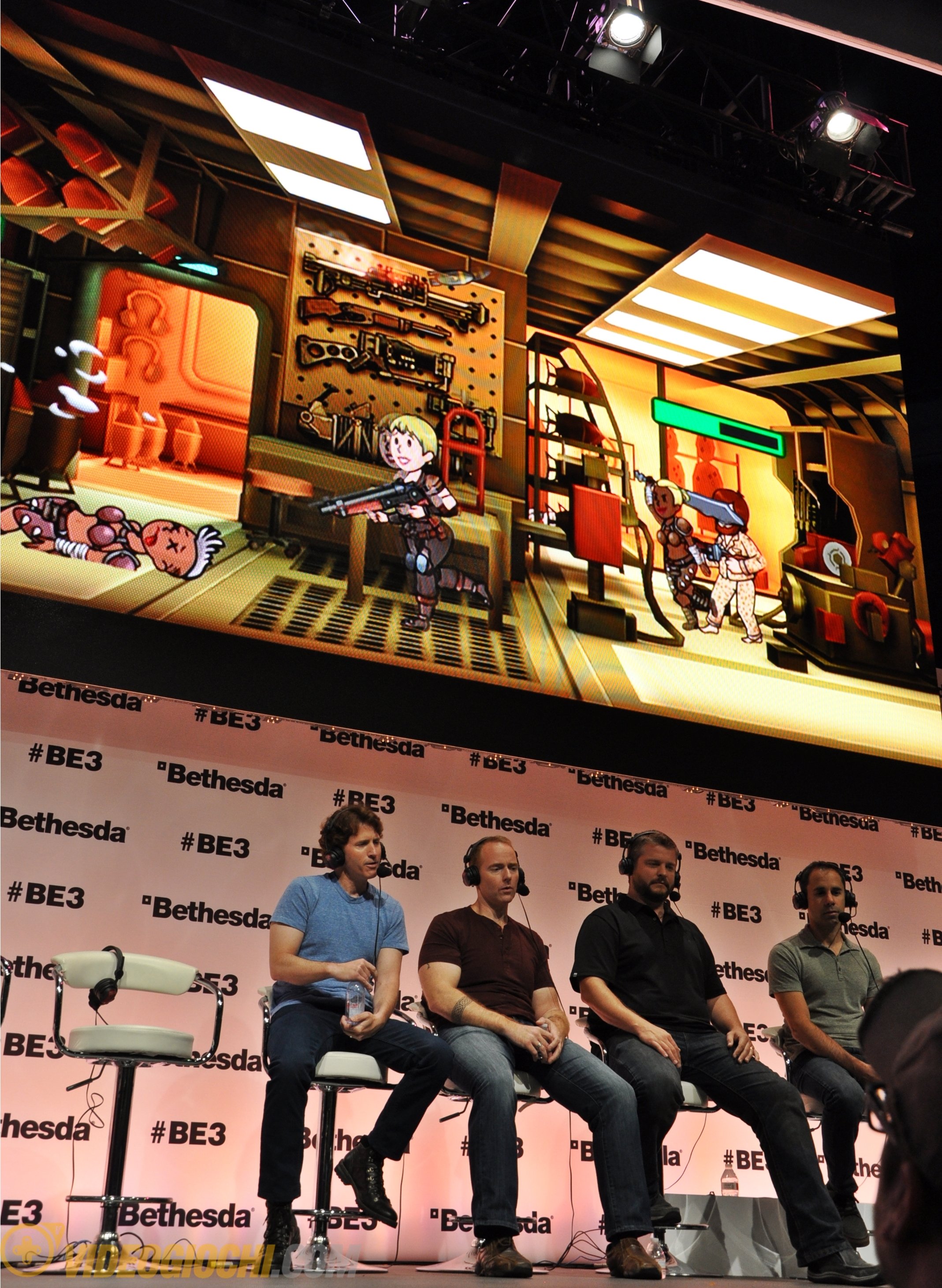 Alla chiaccherata, gestita da Matt Grandstaff (Global Community Lead di Bethesda), hanno partecipato il Game Designer Todd Howard, il Lead Designer e Writer Emil Pagliarulo, il Senior Producer Jeff Gardner e il Lead Artist Istvan Pely. Gli sviluppatori hanno raccontato di come siano felici di essere entrati finalmente nella parte dello sviluppo dove anche loro possono giocare e hanno raccontato alcuni dettagli sul loro lavoro. Ad esempio Howard ha raccontato della grandezza di Fallout 4 e di come spesso i fan siano erroneamente portati a pensare che uno sviluppatore sappia tutto del gioco: non è necessariamente così, soprattutto in un gioco vasto come questo dove le sorprese non finiscono mai.