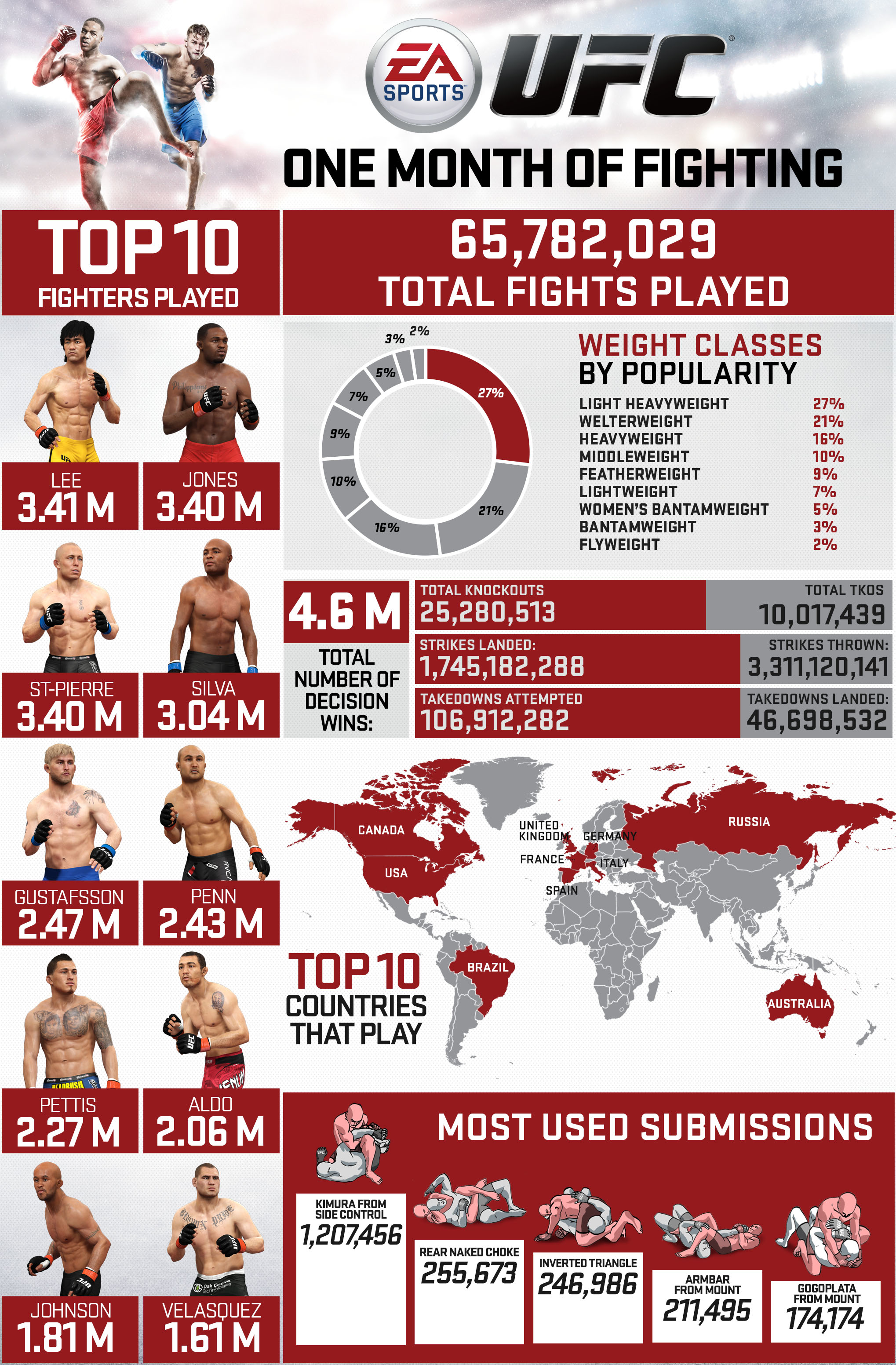 È passato solo un mese dal lancio di EA Sports UFC, videogioco sportivo dedicato alle arti marziali miste, ma abbiamo già alcuni interessanti dati su questo picchiaduro che sta ottenendo un grande successo su PS4 e Xbox One.