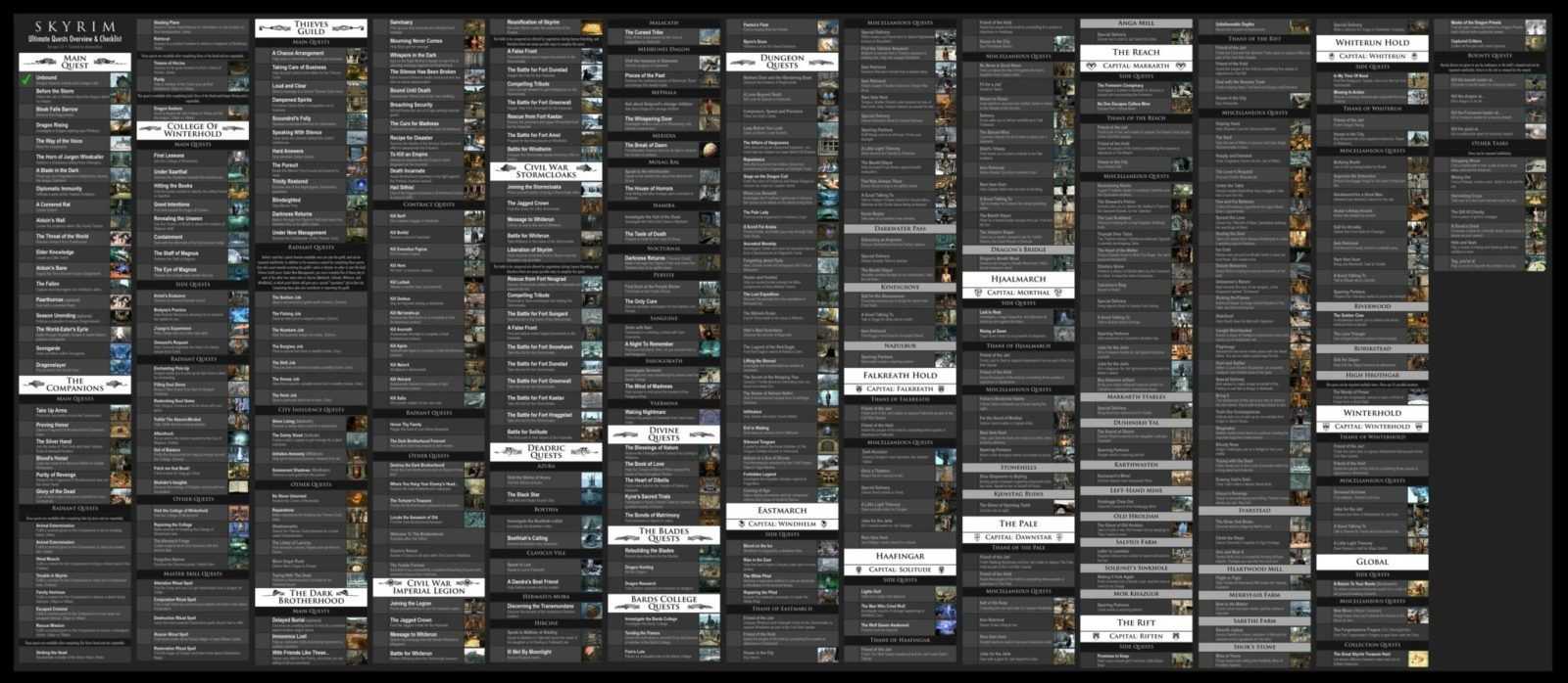 Voi che ne pensate comunque? Avete passato più tempo in Skyrim o Fallout 4? Mentre ci pensate, ecco le due gigantesche immagini contenenti le miriadi di quest dei due titoli… attenti agli spoiler!