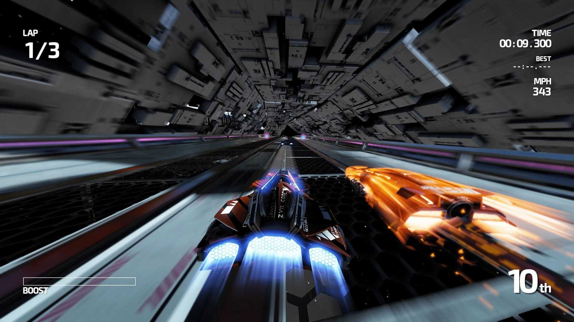 Per quanto riguarda il lato tecnico, come già ampiamente sottolineato, il titolo non brilla particolarmente, con texture mediocri e pochissimi elementi di contorno, ma quel che conta c’è: si gira tranquillamente a 60 FPS, e in un titolo dove la velocità la fa da padrona è fondamentale, la sensazione di velocità supersonica, infatti, è veramente ben realizzata, e ricordiamoci di star parlando pur sempre di un titolo indipendente, sviluppato a basso budget e venduto a soli €14.99.