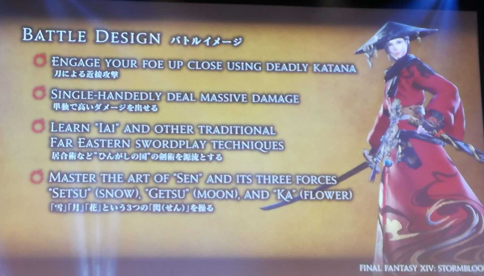 Durante il Final Fantasy XIV FanFest di Francoforte, Naoki Yoshida – producer e director del gioco – ha svelato la nuova classe contenuta nella futura espansione Stormblood. Amanti del Giappone feudale, siete ovviamente tutti invitati.