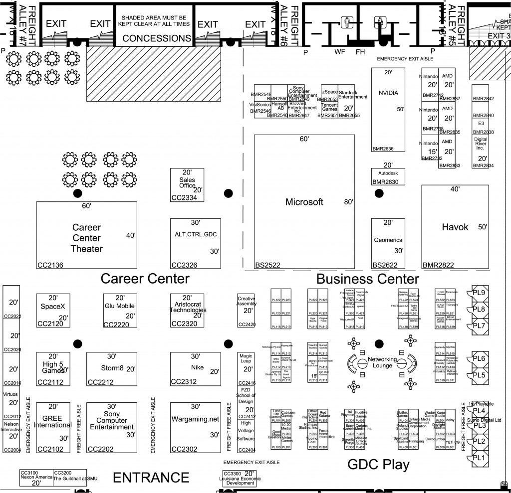 Nella giornata odierna è stata pubblicata la planimetria dell’intera area allestita in occasione della GDC 2015, che si terrà a San Francisco dal 2 al 6 marzo 2015. Tutti i vari publisher e le software house saranno presenti con i propri stand, ma ciò che più risalta all’occhio è la quantità di stand appartenenti a Microsoft. Oltre ad averne un numero elevato, la società di Redmond può vantare anche lo stand più grande dell’intera fiera, visibile sulla piantina sottostante nella “Expo Area”. Microsoft è presente con un secondo grande stand anche nel “Business Center”. Con questa presenza massiccia da parte del publisher, aspettiamoci numerose sorprese sia dal lato console (Xbox One), sia da quello PC (gaming e Windows 10).