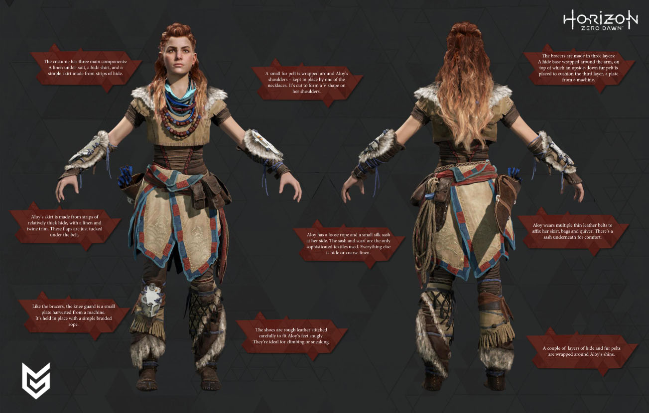 Guerrilla ha anche diffuso un PDF dedicato a coloro che desiderano interpretare la protagonista Aloy in un cosplay, con immagini di modelli tridimensionali che mostrano numerosi dettagli della protagonista, compresi pettinatura e armi. Ecco le immagini, ricordiamo che Horizon: Zero Dawn verrà pubblicato nel 2016 in esclusiva per PlayStation 4.