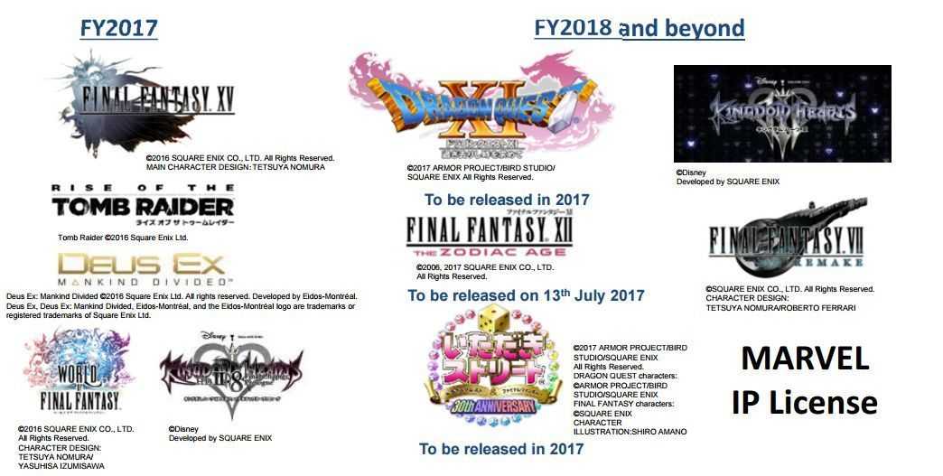 Dando uno sguardo all’immagine in basso, si può notare come i due giochi di Nomura siano attesi per “l’anno fiscale 2018 e oltre”. L’anno fiscale in questione, per la cronaca, inizia ad aprile 2018.