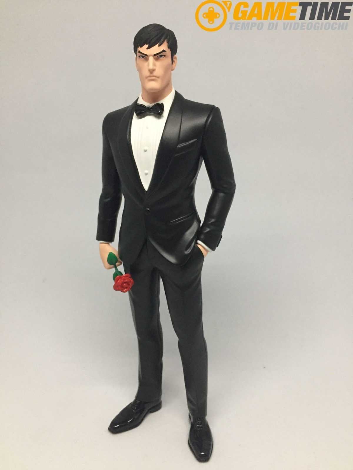 La figure è realizzata in scala 1:10 ed è alta circa 18cm e possiamo vedere Bruce Wayne con un abito nero e un farfallino sempre nero, la mano sinistra nella tasca mentre nella mano destra possiamo optare di inserire una rosa oppure un batarang.