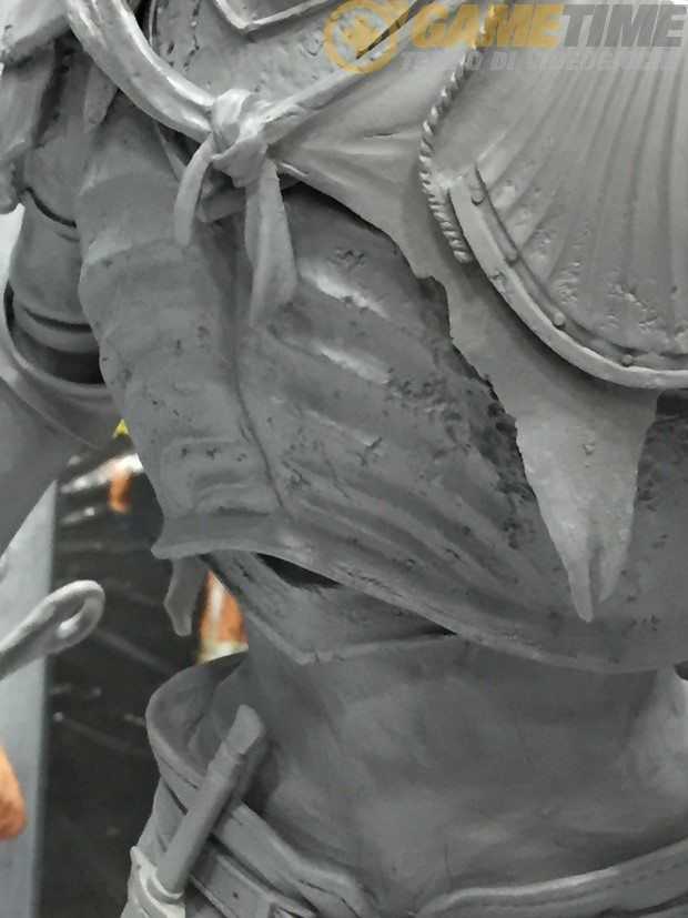 Si trattava ancora di un prototipo ma era possibile ammirare gli incredibili dettagli presenti opera dell’artista giapponese Shinja (alias Headlong) che abbiamo conosciuto personalmente. La Gecco ci ha confermato che la statua avrà anche delle maglie metalliche che al momento nel prototipo esposto non erano presenti.