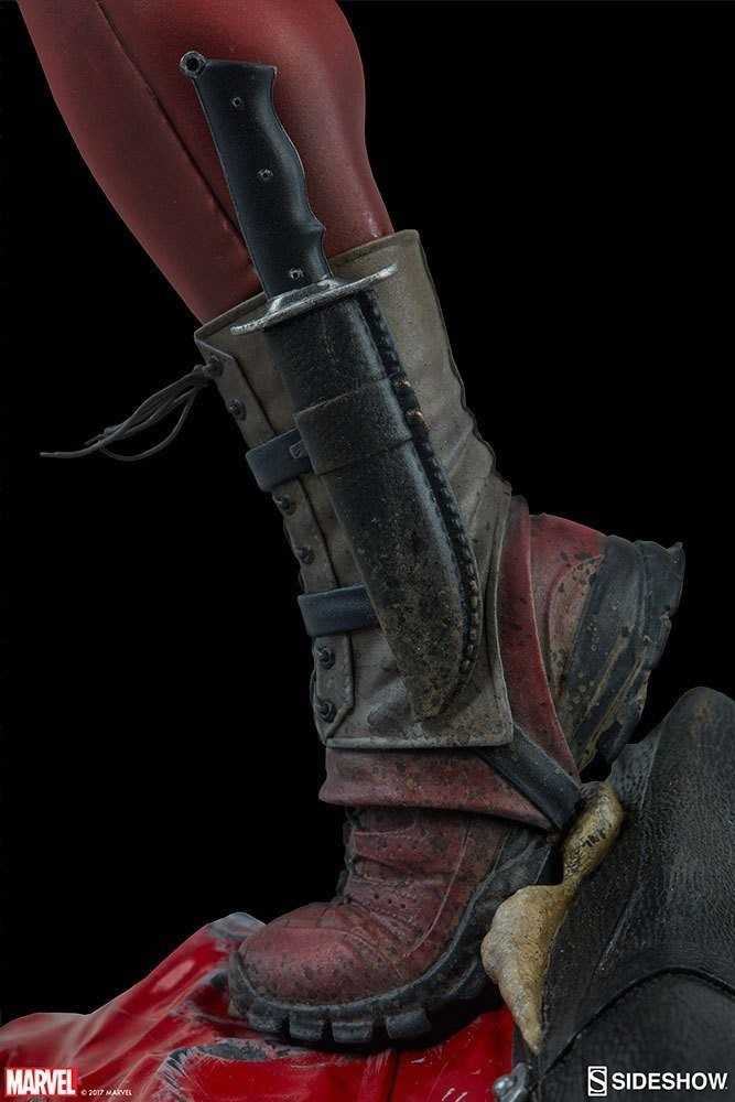 In scala 1/4, è alta 22″ (55,8 cm) e mostra Lady Deadpool mentre calcia con il piede destro un missile, oppure la testa di Headpool (grazie ad una gamba alternativa)