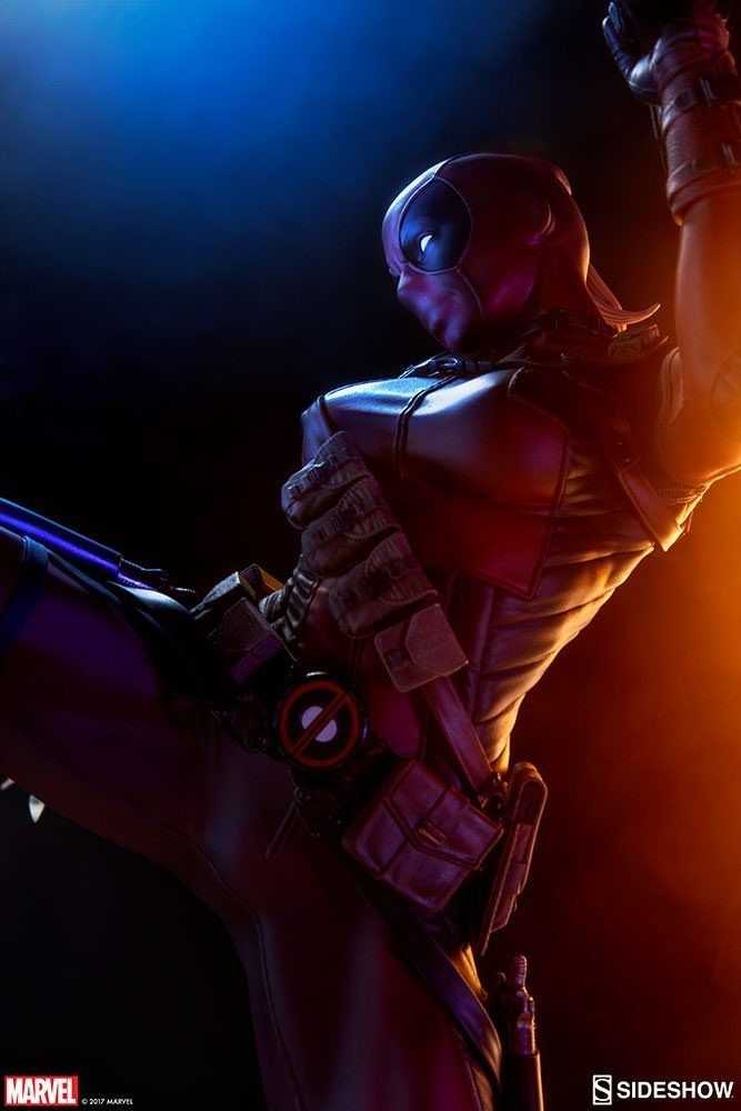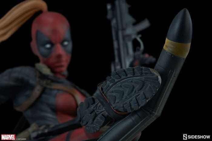 In scala 1/4, è alta 22″ (55,8 cm) e mostra Lady Deadpool mentre calcia con il piede destro un missile, oppure la testa di Headpool (grazie ad una gamba alternativa)