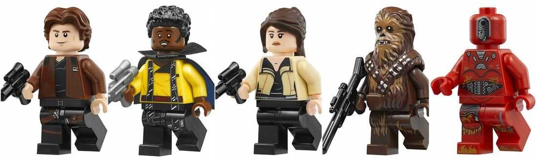 La momento sono stati svelati solamente cinque dei sette personaggi, con gli ultimi due che sono ancora segreti: Han Solo, Chewbacca, Lando Calrissian, Qi’ra, e un droide di Kessel.