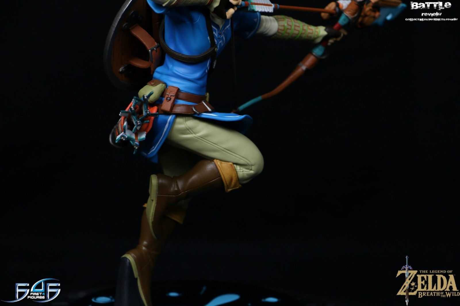 Link è rappresentato in una posa molto dinamica mentre cerca di scoccare una freccia in equilibrio solo sul piede sinistro. I dettagli sono stati eseguiti alla perfezione riproponendo fedelmente il personaggio del videogioco. Nulla è stato lasciato al caso. La scultura e l’ottima colorazione sono i due fattori che subito colpiscono appena si ammira la statua.