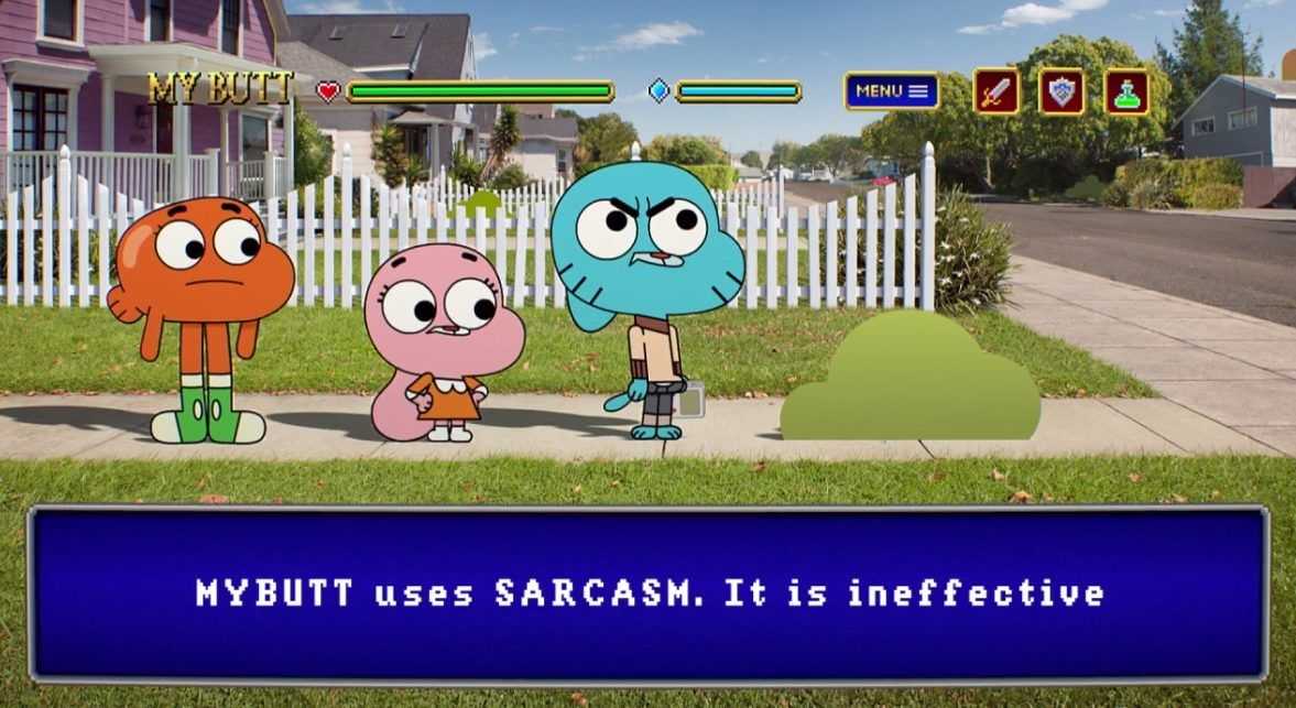 In questo episodio Richard, padre di Gumball, regala al figlio una console portatile che si rivela essere farlocca! Gumball avvia comunque il videogioco che mostra un logo chiaramente ispirato a Final Fantasy e appena comincia a giocare viene catapultato all’interno del mondo di gioco.