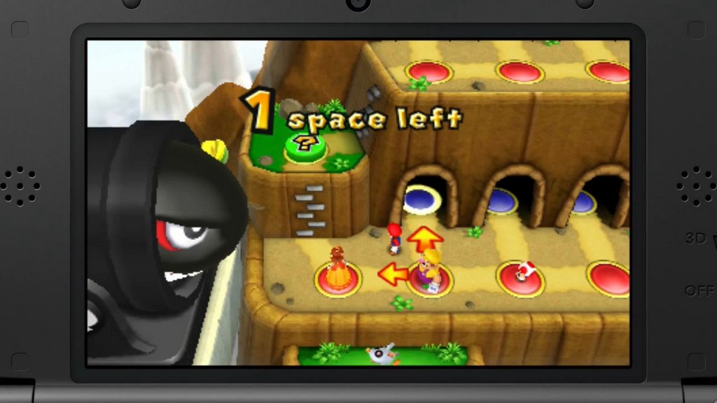 E qui possiamo subito notare la prima contraddizione di questo gioco. Per completare una partita ci può volere fino ad un ora di tempo, il che può risultare un ostacolo per la portatilità del titolo. Nota di merito invece va alla varietà dei percorsi, che pur essendo solo 7 permettono ognuno un approccio diverso alla sfida. Ci troveremo a giocare su un classico percorso muovendoci secondo il numero che uscirà lanciando un dado, oppure usando delle carte in maniera strategica per muoverci del numero di passi che preferiamo. Ciò che permane però in tutti i tabelloni è un unico aspetto la fortuna (o sfortuna). Giocando in compagnia vedersi soffiare la vittoria da un amico per un tiro fortunato di dadi può suscitare sicuramente qualche risata e qualche sbeffeggiamento, ma giocando da soli, vedersi soffiare la vittoria dalla cpu lascia soltanto frustrazione, e la spiacevole sensazione di aver buttato via i 30, 40 minuti per nulla, passando tra l’altro la maggior parte di questo tempo a guardare i giocatori controllati dalla cpu lanciare i dadi e muoversi sul tabellone, con pochissime possibilità di velocizzare queste scenette fastidiose. Anche in tabelloni dove la fortuna dovrebbe influire in maniera minima riesce sempre a capitare qualcosa che scombussola i piani del giocatore e riesce a far perdere una partita condotta sempre in testa per colpa di un tiro fortunato della cpu all’ultimo turno.