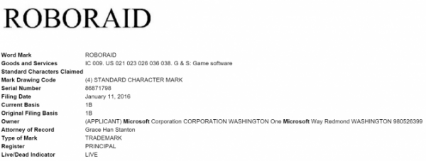 L’ente statunitense per la registrazione dei brevetti ha di recente ricevuto, da parte di Microsoft, la richiesta per l’inserimento di un nuovo marchio chiamato “Roboraid”.