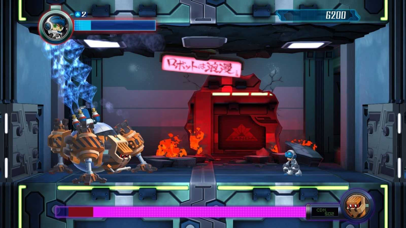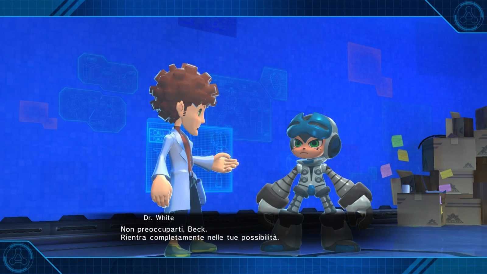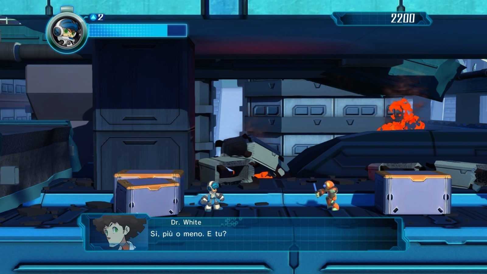 Eccoci quindi alle consuete valutazioni sul comparto tecnico. I modelli poligonali presenti in Mighty No. 9 sono molto scarni e approssimativi, ma nonostante questo ci sono dei punti in cui il gioco lagga parecchio; a questo si aggiunge un character design forse eccessivamente infantile e dialoghi a volte surreali. In sostanza, Mighty No. 9 è un gioco fermo a metà, che cerca di innovarsi senza farlo davvero. Non è un cattivo prodotto, anzi mi ha parecchio divertito, ma a livello tecnico si poteva fare senz’altro di più, invece di puntare sul semplice affetto dei fan per il personaggio.