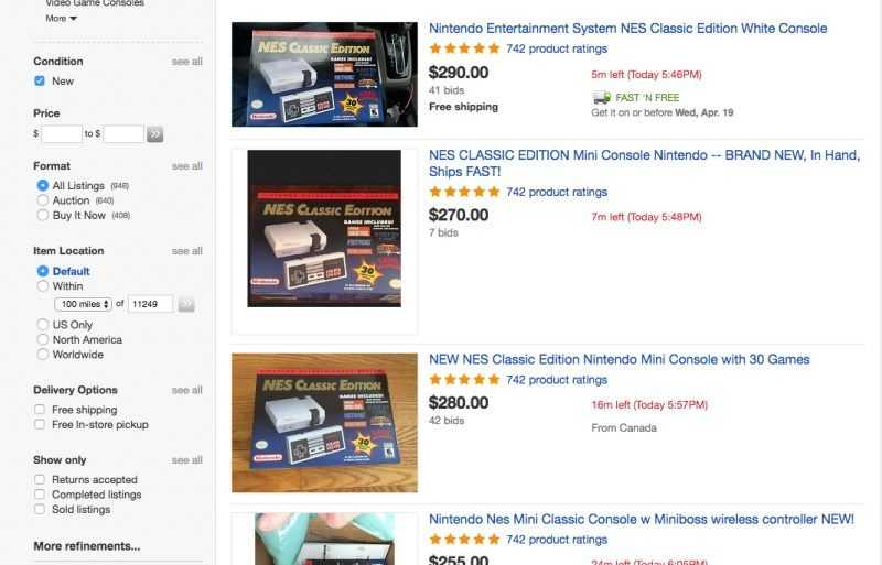Sono tante le persone che vorrebbero possedere un Mini NES, d’altronde stiamo parlando della versione in miniatura di una piattaforma storica. Kotaku ha così provato fare una veloce ricerca sul noto sito di vendita e aste on-line e ha scoperto alcuni risultati davvero imbarazzanti.