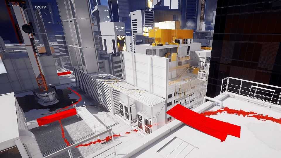 Mirror’s Edge Catalyst ci riporta sui tetti della Città di Vetro, Glass, bellissima nella sua candida purezza quanto sterile nelle emozioni, perché ovviamente tanto ordine può solo essere apparente e frutto di un controllo ferreo della popolazione, che soffre sotto la guida rigida delle corporazioni. Questo spiega il perché, raramente, avrete contatti con le gente del posto, tanto che una città così sconfinata potrebbe sembrarvi solo un enorme parco giochi. Rispetto al passato, però, oggi Glass è ancora più bella, simile nelle forme ma arricchita di dettagli dinamici, come l’abbondanza di luce riflessa o i grandi schermi pubblicitari, che animano in modo diverso la città a seconda dell’ora del giorno e della notte. Un giorno non convenzionale, perché l’alba e il tramonto sembrano essere predominanti.