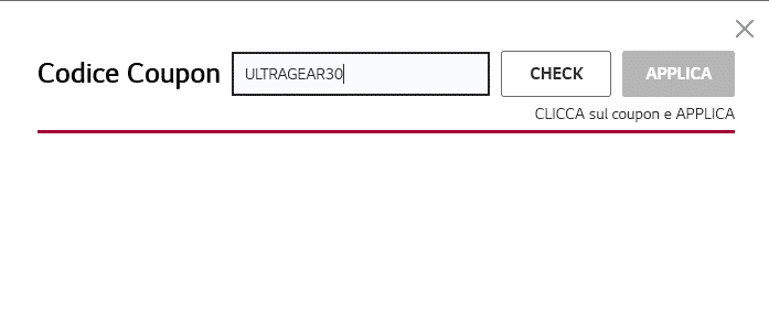 Per poter usufruire della promozione dovrete innanzitutto effettuare l’acquisto sullo store LG e al momento del pagamento inserire il codice sconto: ULTRAGEAR30. In questo modo verrà immediatamente applicato uno sconto del 30% sul prezzo del monitor!