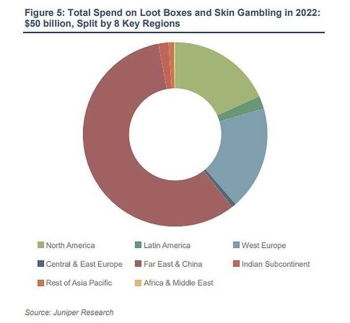 Uno studio di Juniper Research ha svelato che all’attuale tasso di crescita entro il 2022 su spenderemo 50 miliardi di dollari l’anno in loot box e microtransazioni.