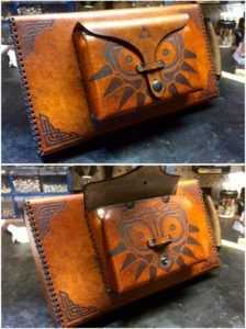 Il tema è dedicato alla saga di Zelda, con il logo classico in rilievo e color ocra in bella vista. Mentre altre decorazioni sono pirografate sulla pelle stessa.