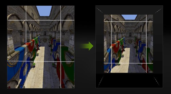 Alcune delle soluzioni adottate da NVIDIA sembrano essere molto promettenti, in particolare il multi-resolution shading. Applicandolo, l’immagine viene divisa in 9 settori: quello centrale viene renderizzato 1:1, mentre le altre 8 “finestre” a una risoluzione inferiore, cosa che non si nota a causa delle distorsioni dell’immagine dovute alle lenti. Il risultato è che le performance della scheda video vengono raddoppiate, mentre la qualità visiva è praticamente immutata.
