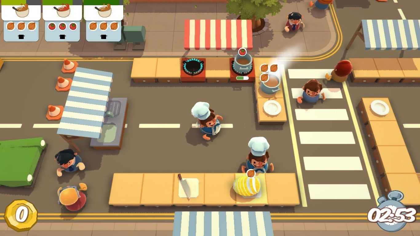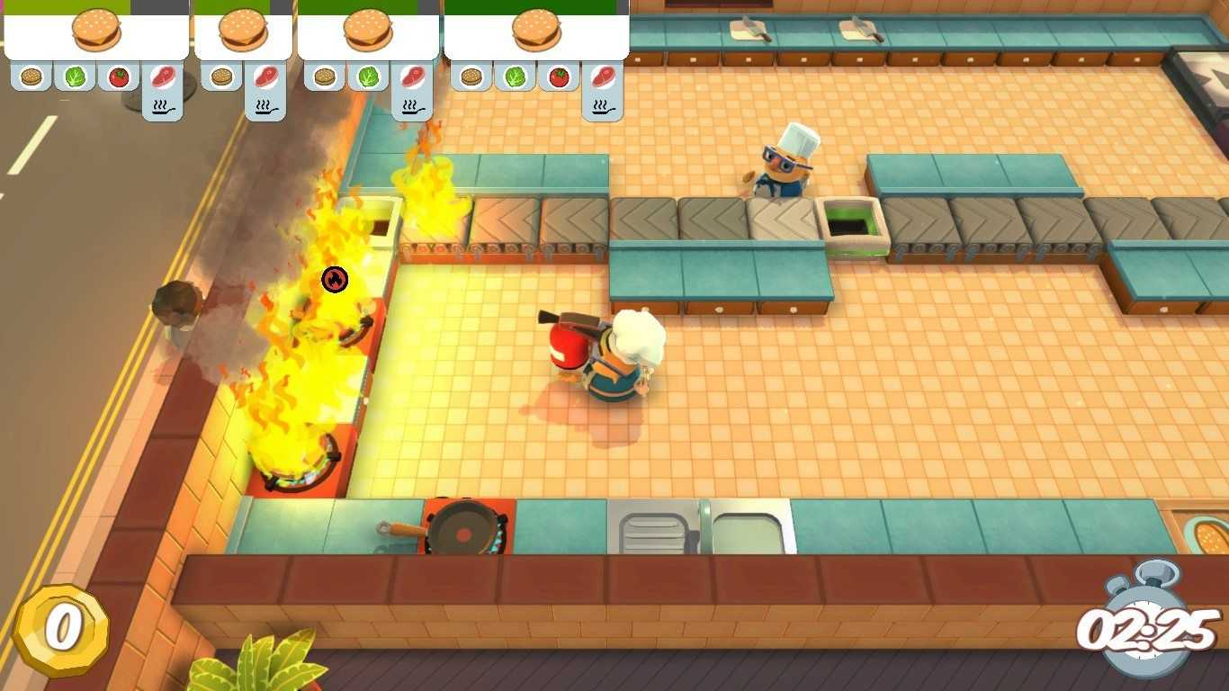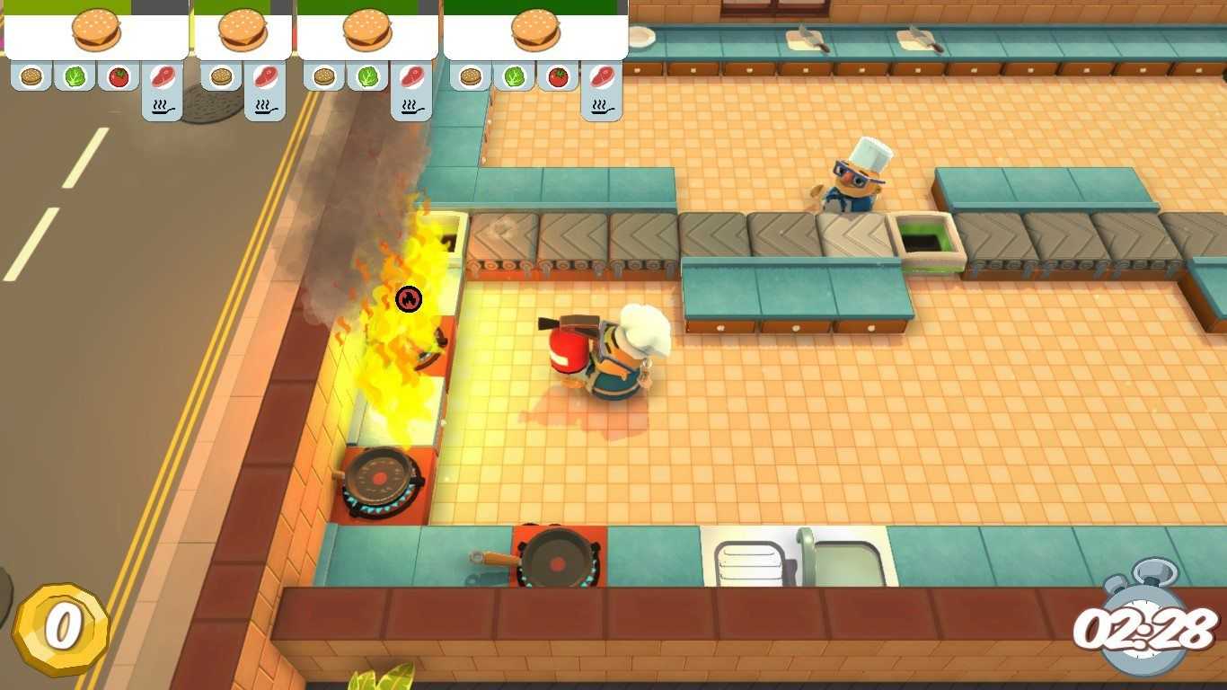 Controllando piccoli e buffi cuochi, dovrete gestire l’intero processo di realizzazione delle ricette, lavorando ad alti ritmi e rimanendo costantemente concentrati. Una frenetica catena produttiva basata su azioni ben determinate: visualizzare gli ordini ricevuti, recuperare gli ingredienti necessari, affettare le materie prime, mettere il tutto sul fuoco, tenere d’occhio la cottura, impiattare e servire. Talvolta avrete anche bisogno di dare una lavata alle stoviglie, poiché il rischio di esaurirle sarà sempre dietro l’angolo, così come il pericolo di bruciare un preparato talmente a fondo da far divampare un enorme incendio.