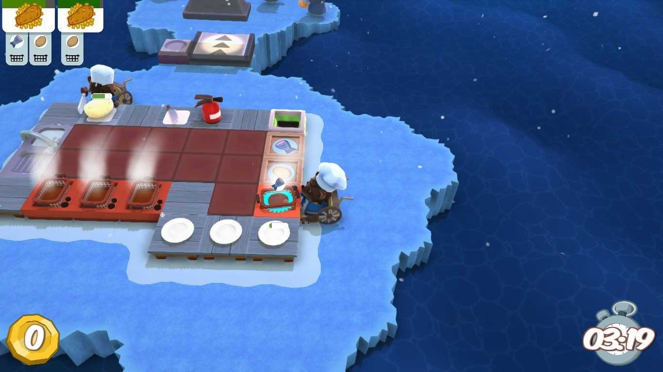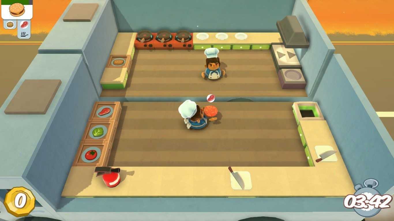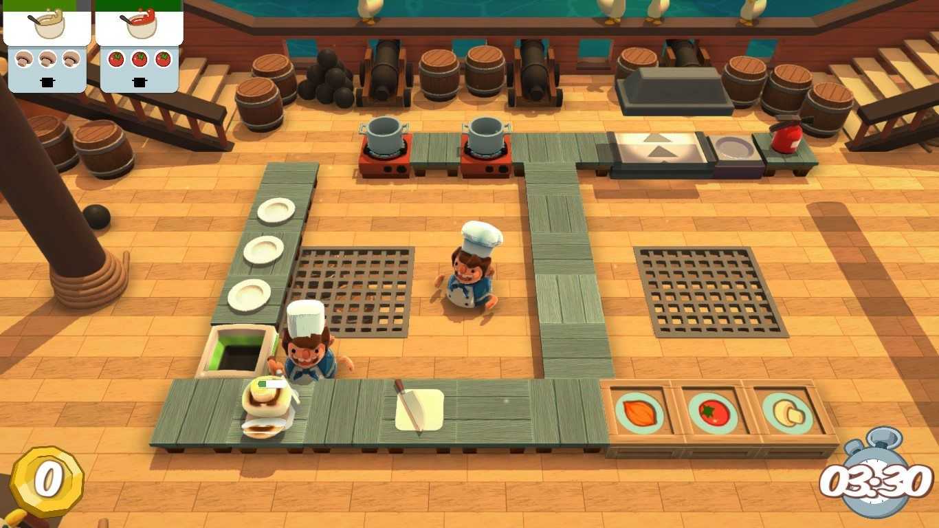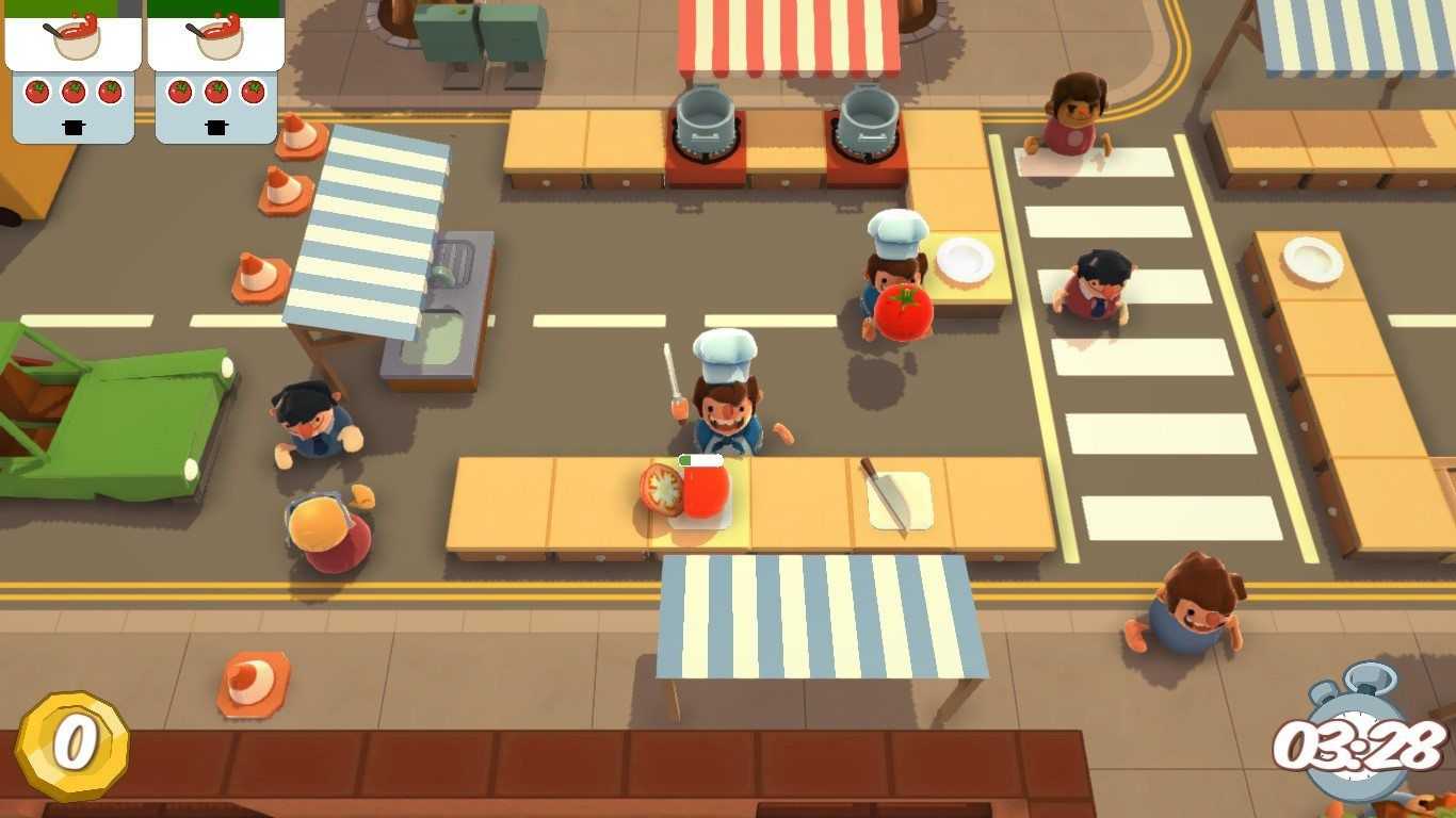 Controllando piccoli e buffi cuochi, dovrete gestire l’intero processo di realizzazione delle ricette, lavorando ad alti ritmi e rimanendo costantemente concentrati. Una frenetica catena produttiva basata su azioni ben determinate: visualizzare gli ordini ricevuti, recuperare gli ingredienti necessari, affettare le materie prime, mettere il tutto sul fuoco, tenere d’occhio la cottura, impiattare e servire. Talvolta avrete anche bisogno di dare una lavata alle stoviglie, poiché il rischio di esaurirle sarà sempre dietro l’angolo, così come il pericolo di bruciare un preparato talmente a fondo da far divampare un enorme incendio.