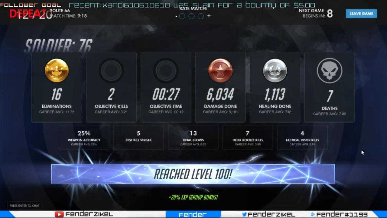 Overwatch non ha level cap, ma c’è un giocatore che ha già raggiunto il livello 100. Si tratta dell’utente di Reddit FenderOverwatch, che sarebbe arrivato a tale traguardo in 92 ore, la maggior parte delle quali (circa 30) giocate con il personaggio di Pharah.