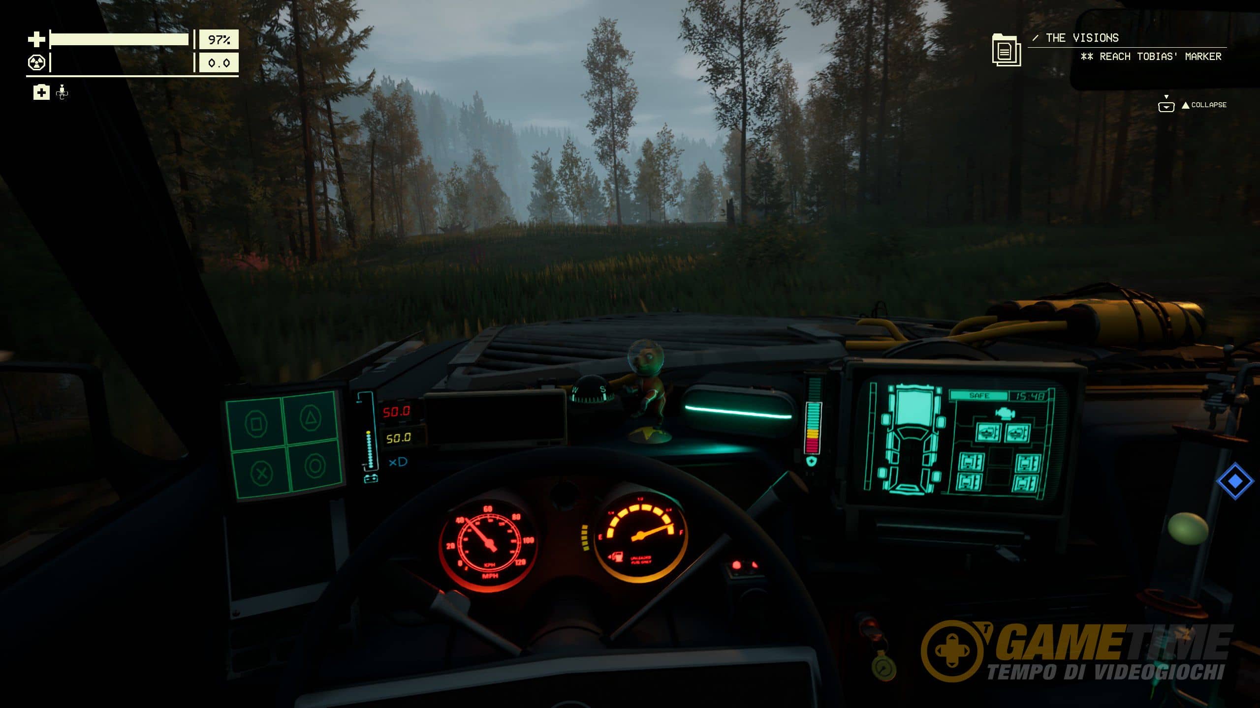 La Station Wagon, però, è anche qualcosa di più di un semplice mezzo. È l’unico riparo sicuro dalle radiazioni e dalle anomalie. È una casa dentro cui rifugiarsi per rilassare i propri nervi dopo essere scampati all’ultimo da un’emissione, ascoltando la radio e illuminando l’area con i fari e la luce interna. È anche, e soprattutto, una compagna di viaggio da accudire riparandola e migliorare nel corso del tempo grazie a un sistema di crafting che non si discosta troppo da altri esponenti del genere. La cura dell’auto va però ben oltre la semplice costruzione di pezzi di più alto livello, che possono essere pannelli corazzati, luci migliori o anche motori più potenti.
