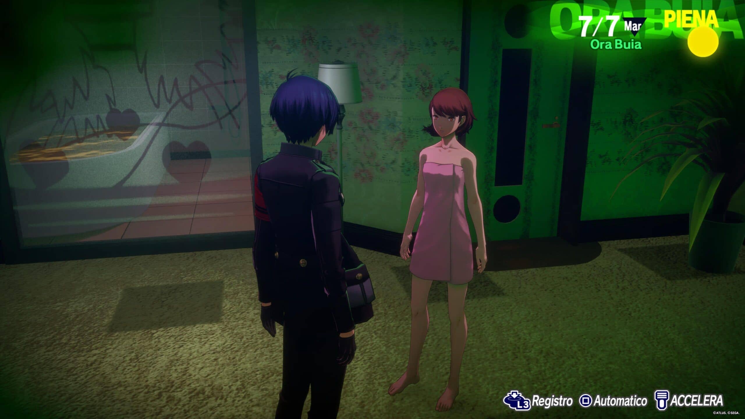 Interessante è poi l’aggiunta di alcune scene extra, facilmente missabili se non si presta attenzione, che hanno il compito di raccontarci di più sui personaggi maschili del nostro gruppo e che sono state inserite per compensare alla mancanza delle Affinità Sociali (corrispettivo dei Confidant in P5) con loro. Differente è il discorso per le ragazze, con le quali da un certo punto in poi potremo intraprendere un rapporto che potrà sfociare nella classica romance.