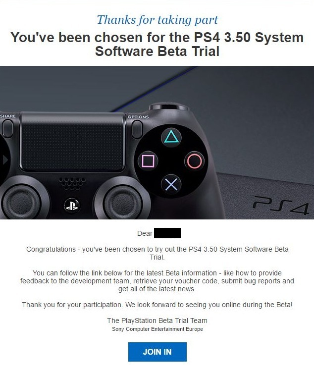 Chiunque abbia effettuato la registrazione per prendere parte al test, può controllare la propria mail in cerca dell’invito spedito da Sony Computer Entertainment Europe (utenti europei) e Sony Computer Entertainment America (utenti nord-americani).