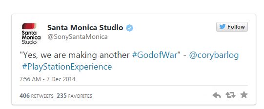 Successivamente, sempre via Twitter, Sony Santa Monica ha confermato la notizia, per poi rimuoverla. Forse era troppo presto per annunciarla… Del resto durante il keynote, lo studio non ha mai menzionato il nuovo progetto…