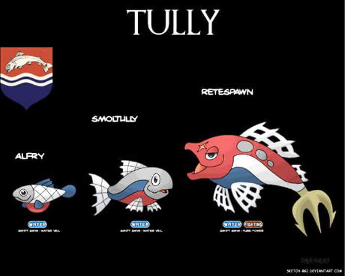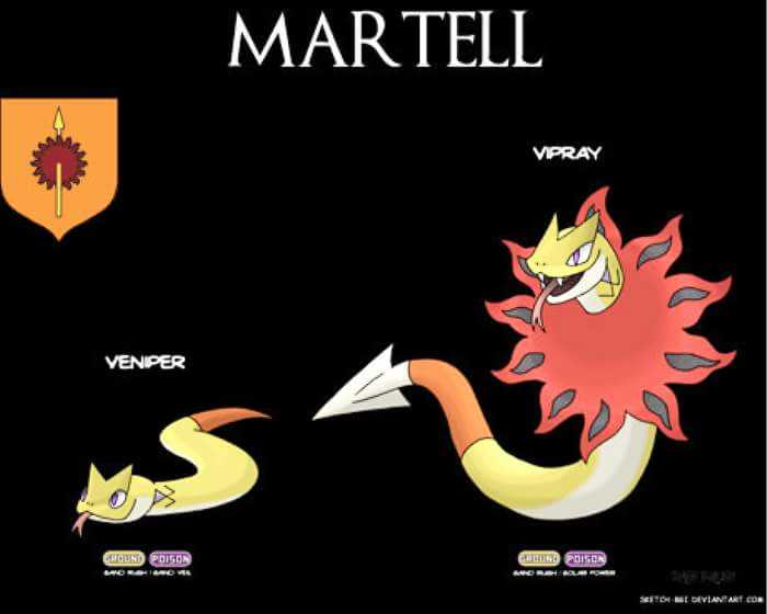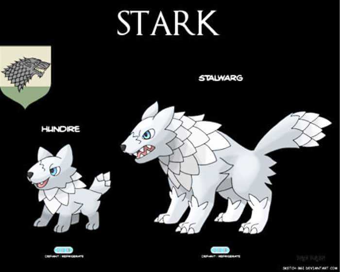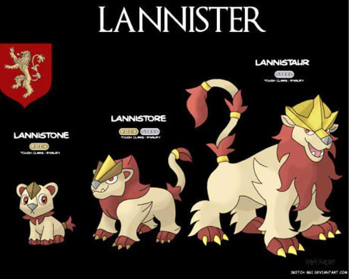 Gli amanti della serie Game of Thrones, ma anche lo stesso George Martin, non potranno non apprezzare l’inventiva dei fan manifestatasi con l’ideazione di un pokémon (e relative evoluzioni) per ognuna delle case maggiori della fortunata serie.