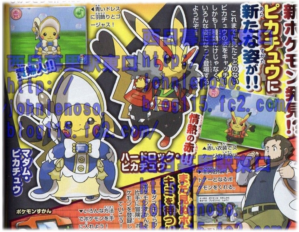 Nell’immagine della rivista che vi riportiamo in calce alla notizia, per esempio, potete vedere Pikachu vestito in versione “Madam Pikachu” e in versione “Hard Rock Pikachu”. Non sappiamo se Pikachu sarà l’unico mostriciattolo che potrà essere abbellito come vogliamo, dato che le pagine mostrano soltanto il roditore giallo, tuttavia è probabile che anche le altre creature potranno essere adornate in Pokémon Rubino Omega e Pokémon Zaffiro Alpha.