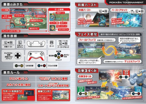 Il sito web di Pokkén Tournament è stato aggiornato dagli sviluppatori e offre nuove informazioni legate al picchiaduro Pokémon. È possibile dare uno sguardo al manuale che insegna “come giocare” al titolo: sono stati forniti tutti comandi per eseguire determinate mosse o tecniche. La particolarità è che la configurazione dei tasti non è impostata tramite arcade stick, ma su un D-Pad. Questo significa che il gioco, confermato al momento solo in versione arcade, sarà giocabile tramite joypad. Inoltre, sono stati rivelati due nuovi assistenti Pokémon, ovvero Frogadier e Eevee.
