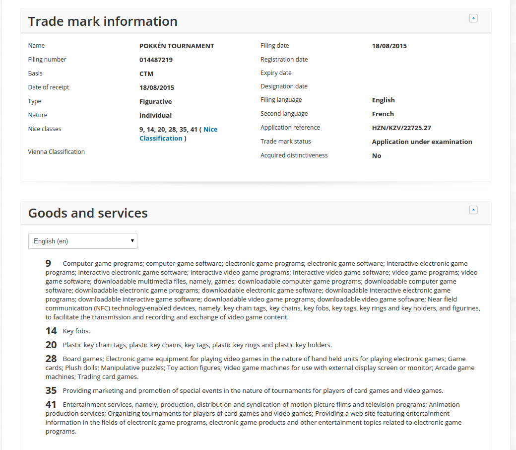 Non ci sono ancora conferme ma proprio in questi giorni ci sarà il Pokémon World Championships 2015 a Boston, possiamo forse aspettarci un annuncio? Per scoprirlo non ci resta che attendere, nel frattempo ecco uno screenshot della registrazione del marchio: